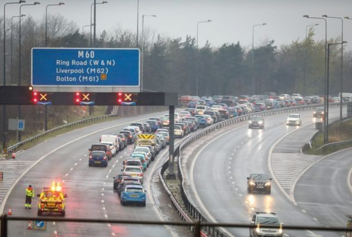 حيث تم استدعاء الشرطة ورجال الإطفاء والمسعفين إلى مكان الحادث على الطريق السريع M60 في مانشستر، و أجبر ضباط المرور على إغلاق الطريق المزدحم لأكثر من ساعتين أثناء إزالة الحطام.